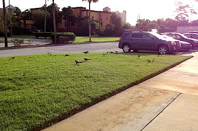 駐車場緑地帯の草刈や除草、駐車場廻りの美観清掃を行い、